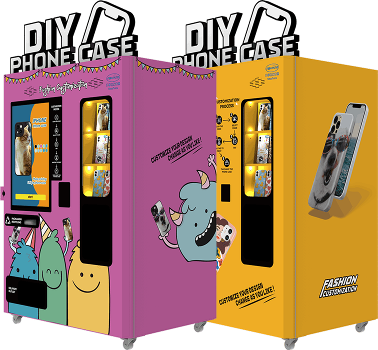 Our high-tech vending machine offers an engaging, modern retail experience – shoppers design and customize their own phone cases in real-time, On screen and watch them print instantly.